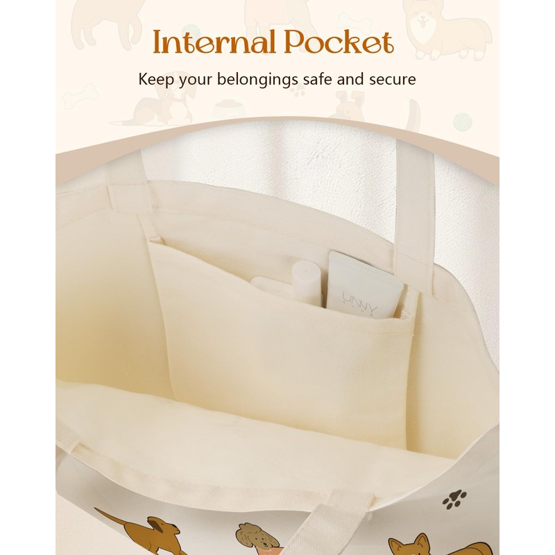Miss Adola Canvas Tote Bag for Women - Aesthetic Canvas Totes with Pockets Cute Funny Design Ladies Reusable Cloths Shoulder Bag for Shopping Daily Work Casual, Dog House