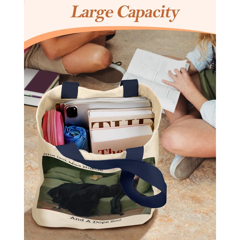 Miss Adola Heavy Canvas Tote Bag with Pocket - for Women Girls Aesthetic Large Canvas Tote Bag Inspired Gift Reusable Casual Bag for Work Shopping, Lying Woman