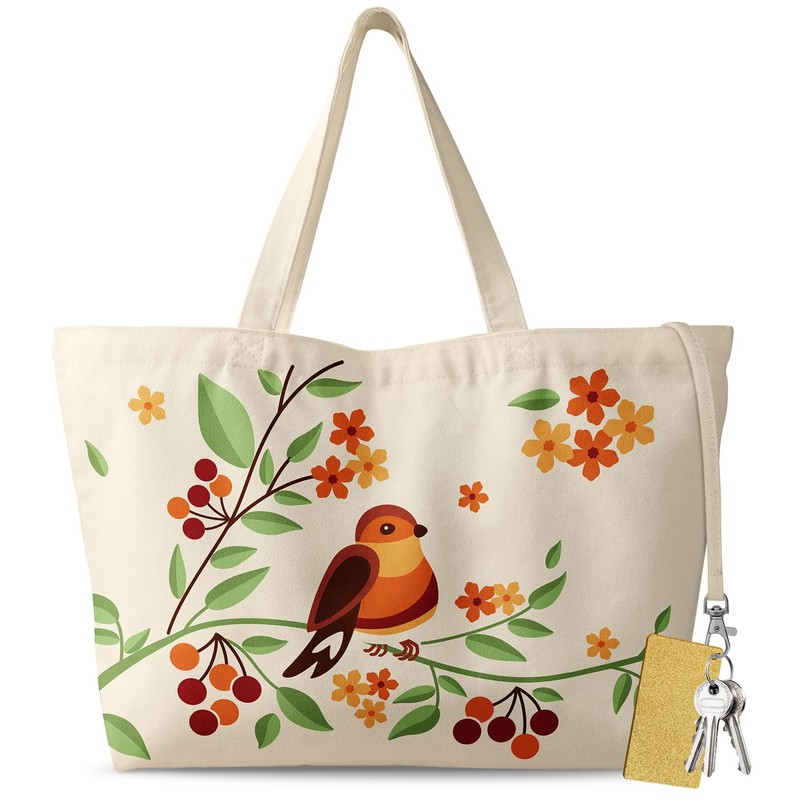 Miss Adola Large Tote Bag for Women - Aesthetic Cute Big Canvas Bags with Zipper Cotton Reusable Shoulder Bag with Hook Graphic for Travel, Work, Shopping, Gym, Tree Bird