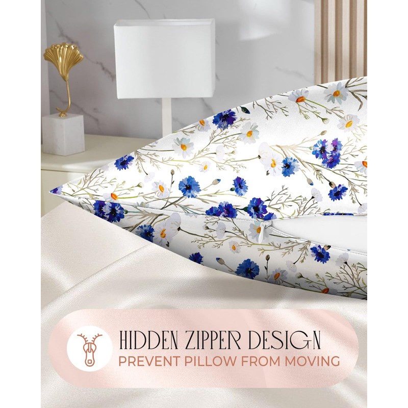 Miss Adola Silk Pillowcase 2 Pack - Standard 50x75cm Mulberry Silk Pillow Cases for Hair and Skin with Hidden Zipper Aesthetic Design Pattern Bed Pillow Protector for Women Girls, Blue Daisy
