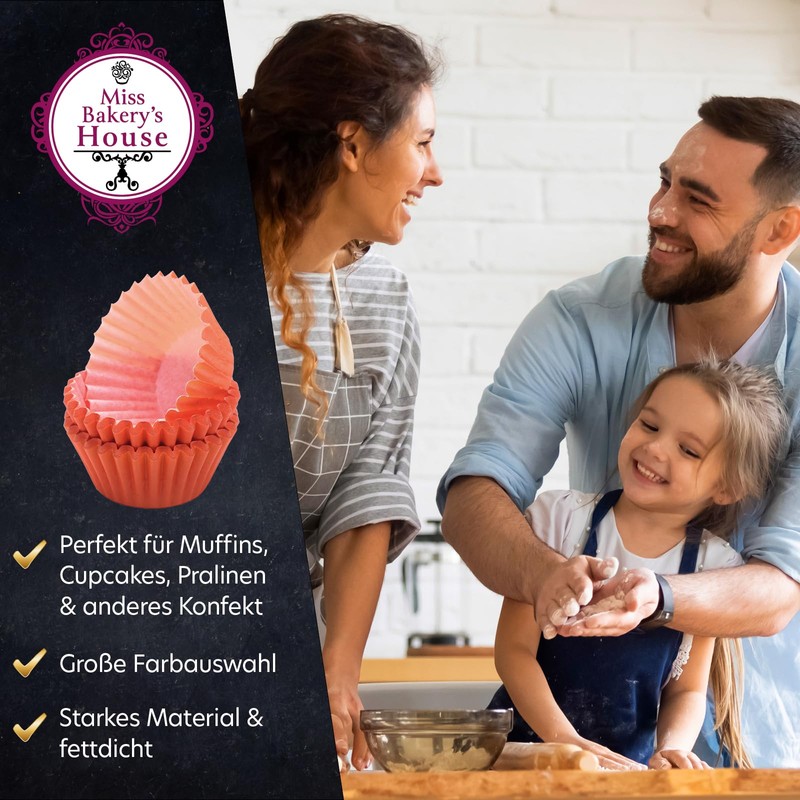 - Easy and quick - start when removing the individual cases from the outside (i.e. at the bottom of the stack), so that the moulds do not lose their shape and use the paper baking cups best in combination with a mini muffin tray, so that the mass has enough grip when baking or curing. This ensures perfectly shaped muffins or chocolates.