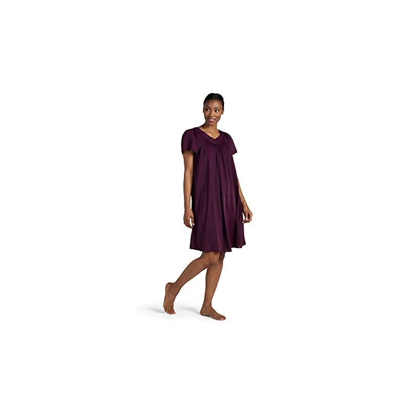 Miss Elaine Tricot Nightgown, Short Sleep Dress With Comfortable Lightweight Fabric, Flutter Sleeves (Medium, Eggplant)