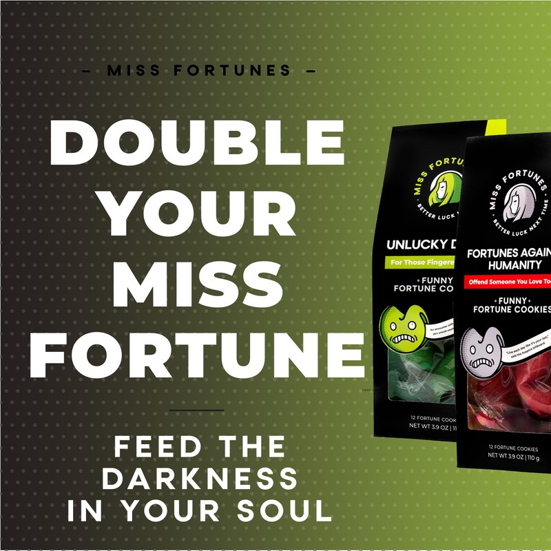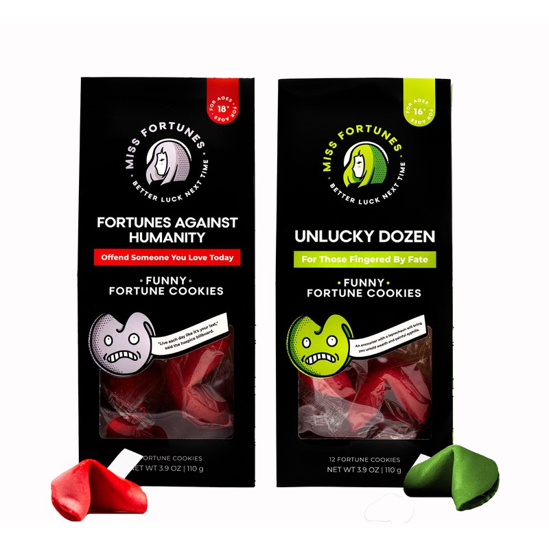 - IRREVERENTLY FUNNY: The cookies are sweet. The fortunes are salty! Miss Fortunes is the funny fortune cookie that satisfies your sweet tooth, but never sugarcoats your destiny. No promises of riches, romance or adventure here -- just gloomy and outlandish predictions that will leave everyone laughing. 24 sinfully delicious cookies, each with a slightly twisted and hilarious message.