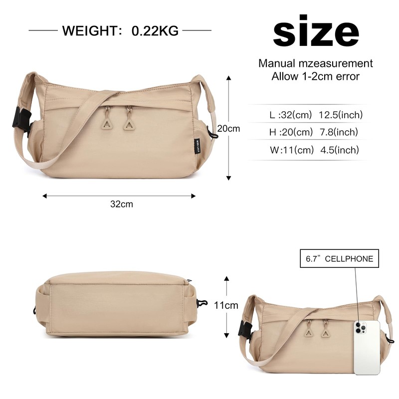 Miss Lulu Women's Waterproof Lightweight Shoulder Bag - 5-Pocket Design, Anti-Theft Travel Crossbody with Adjustable Strap for Daily Use