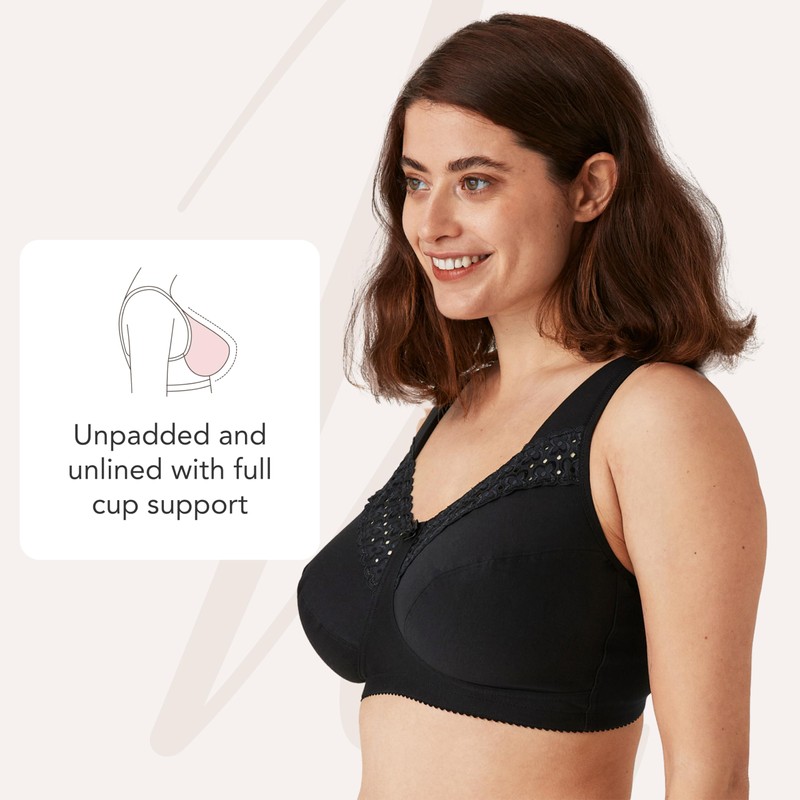 There is nothing that will make you want to cut your day short like a bra strap digging into your shoulder, and that's why we provide wide, padded, adjustable straps to relieve tension and weight. This cotton bra with embroidery is great for use during hot summer months because it is incredibly breathable.