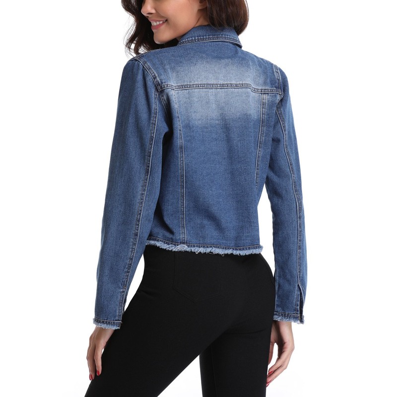 - 【Classic design】Perfect Year-Round Style.The body is flattering to the female figure,it has stylish details such as frayed cuffs and waist. it is so much lighter than a jean jacket,enough room in the sleeves to wear over long sleeve tops or light sweaters.
