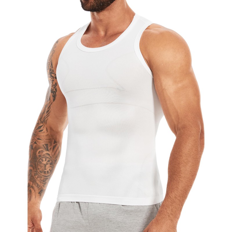 MISS MOLY Shapewear Men's Compression Shirt Men's Sleeveless Body Shaper Elastic Tummy Control Undershirt Men's Tank Top Figure Shaping Tummy Control Shirt Men's Vest, White