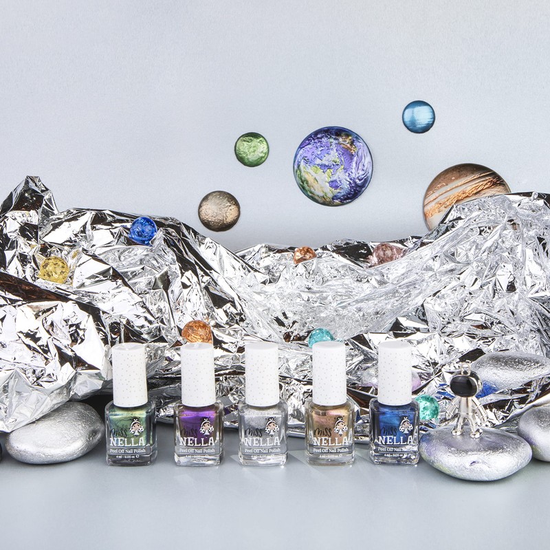 Miss Nella SPACE COLLECTION 5 Chrome nail polish set- Gold, Blue, Purple, Green, Silver, Peel Off kids Nail Polish