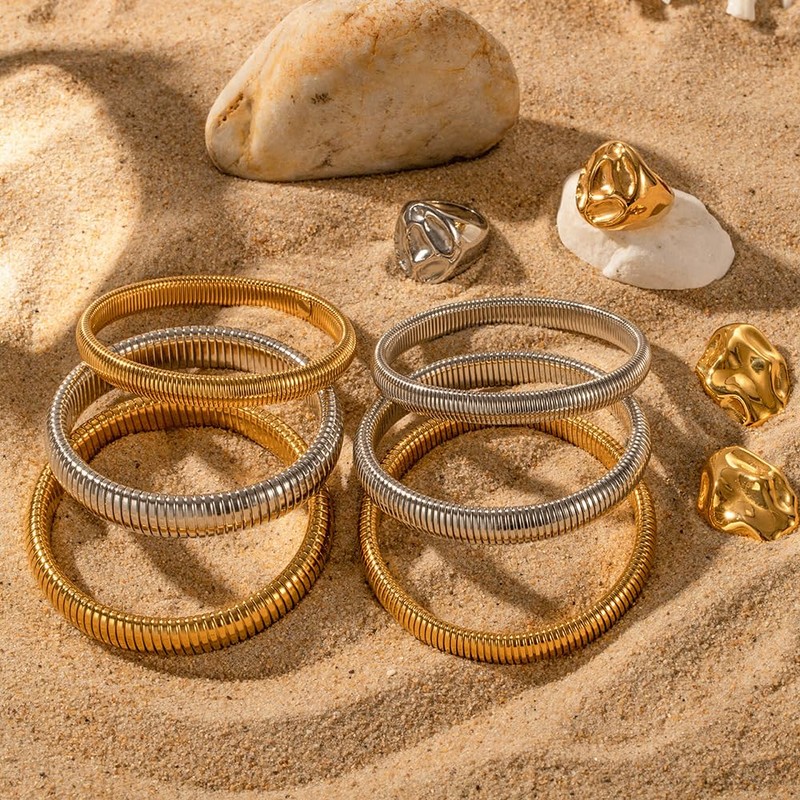 MISS RIGHT Gold Bangle Bracelet Set 3PCS Chunky Titanium Non Tarnish Stretch ...