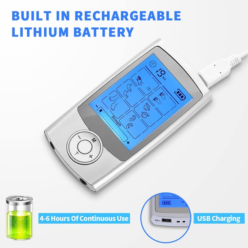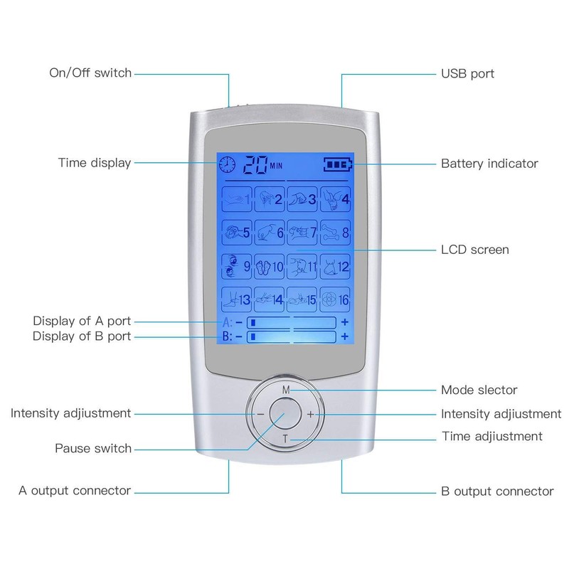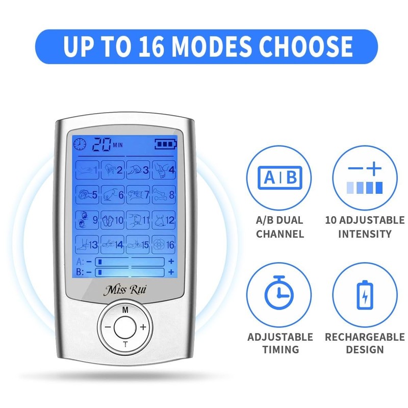 Miss Rui Electric Stimulator with 8 Pads Dual Channel Unit 16 Modes Electric Stimulator