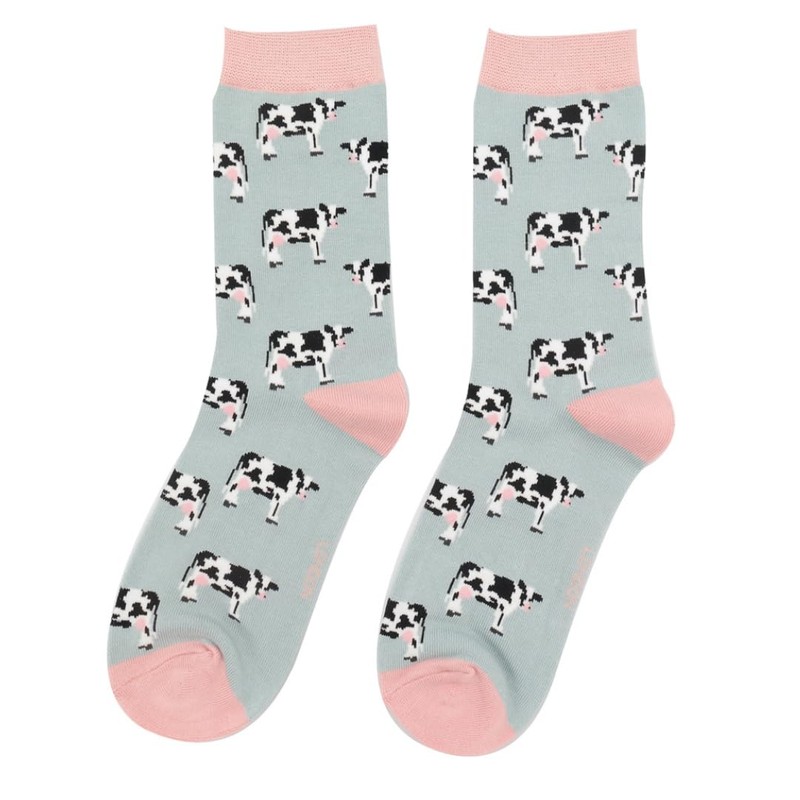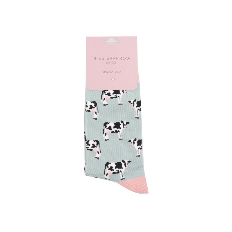 MISS SPARROW Cow Socks Super Soft Breathable Bamboo Blend Womens (UK, Numeric, 4, 7, Regular, Regular, Duck Egg)