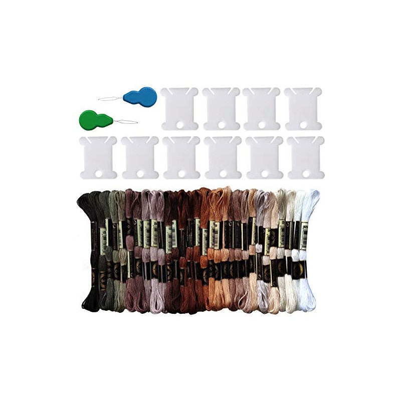 - What You Get: 30 skeins gradient embroidery floss, 10 pieces plastic floss bobbins, 2 pieces needle threaders