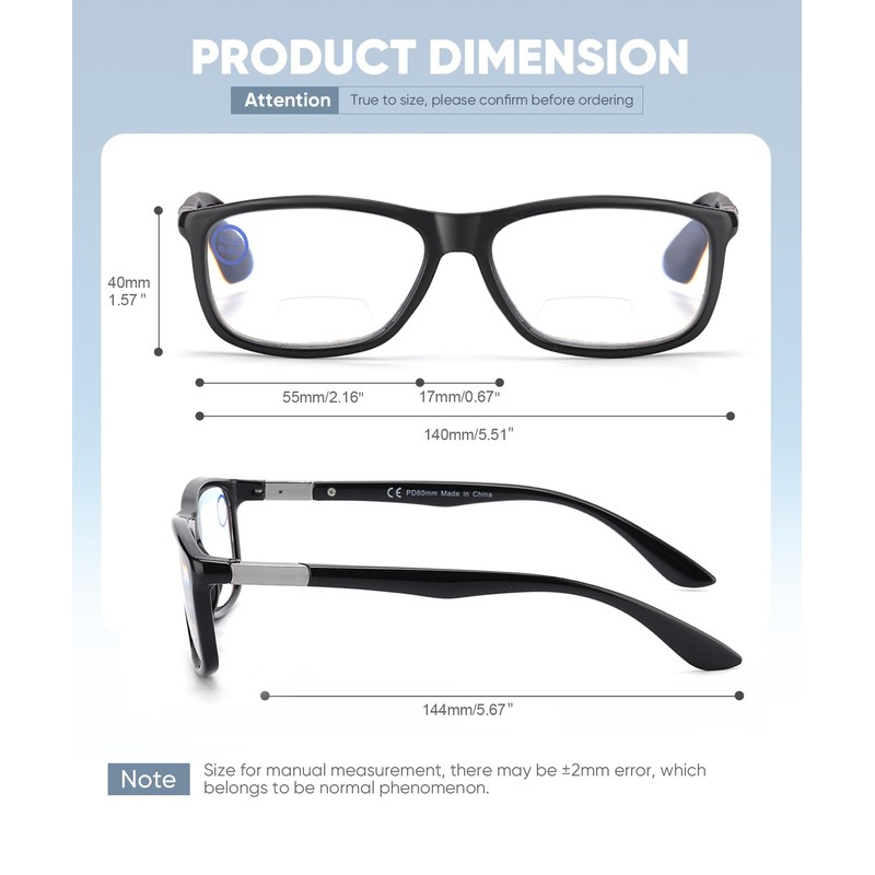 - Clear Near-Distance Vision: The magnification at the bottom of the lenses is your selection, and the top of the lens is 0 diopters, which means you can have clear near and far vision all day long, ideal for reading, working and driving