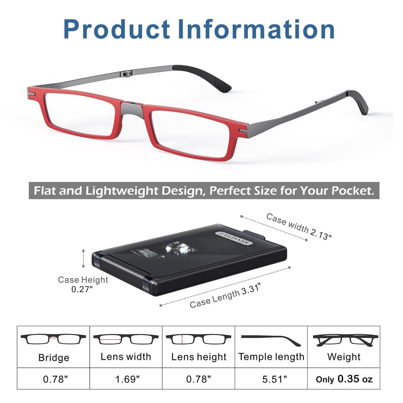 - Creative practical design: Unique design, only weighs 0.35 oz, thin as 3 cards, almost no pressure on temples, nose, and ears; You can use it to read restaurant menus, shopping information, text messages, and other small print when you're out and about, seeing this beautiful world with less "burden"