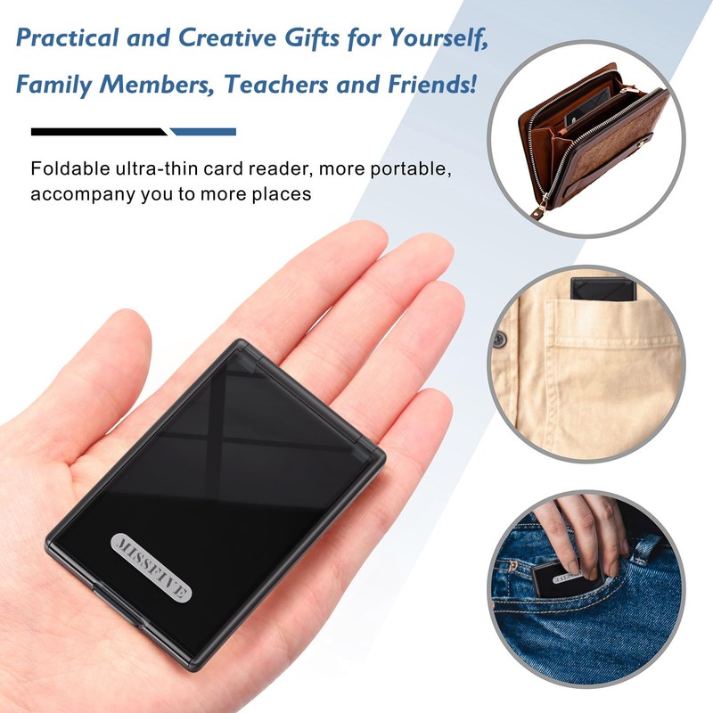 - Card size for carrying everywhere: Packaged in an ultra-thin flat hard case with classic patterns, it can be slipped into front/back pockets, purses, or stuck to the back of your phone case; Thanks to its portability and "always there" availability, it can accompany you to restaurants, shopping malls, trips, etc
