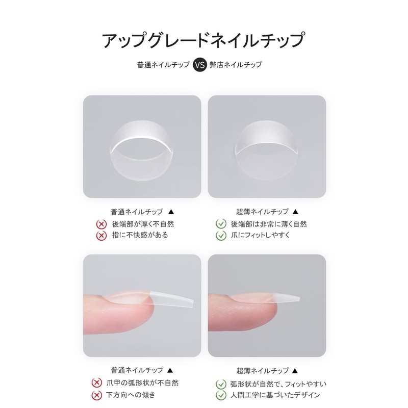 - 【Natural Fit】This soft nail tip features a thin back and thick front end. The thin back end makes the entire nail tip easy to fit onto your nails, eliminating the discomfort