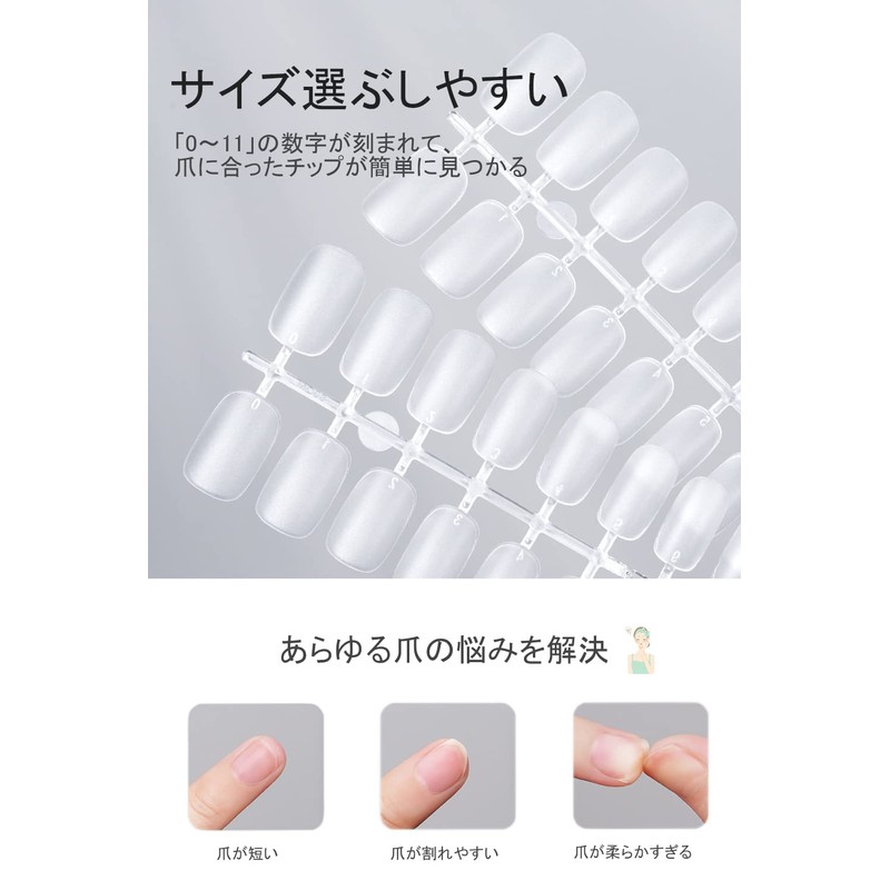 • Sanded Tip: Nail tip with fine uneven texture similar to that of sanding on the surface. Eliminates the hassle of sanding that you need to apply gel over your nail tips, and it won't peel off even if you apply the gel as is. The tip and gel also enhance the adhesion and makes chips that are difficult to lift