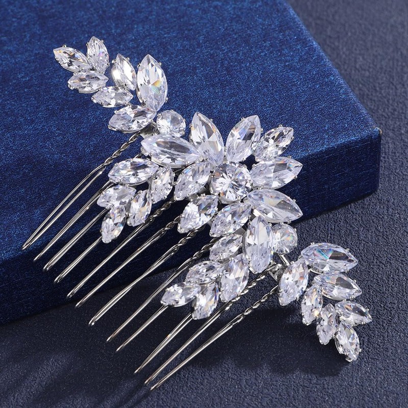 Missgrace Bridal Leaf Rhinestones Hair Comb Sparkling Dainty Rhinestones Headpiece for Women Elegant Hair Comb Hair Accessoires for Bride Women