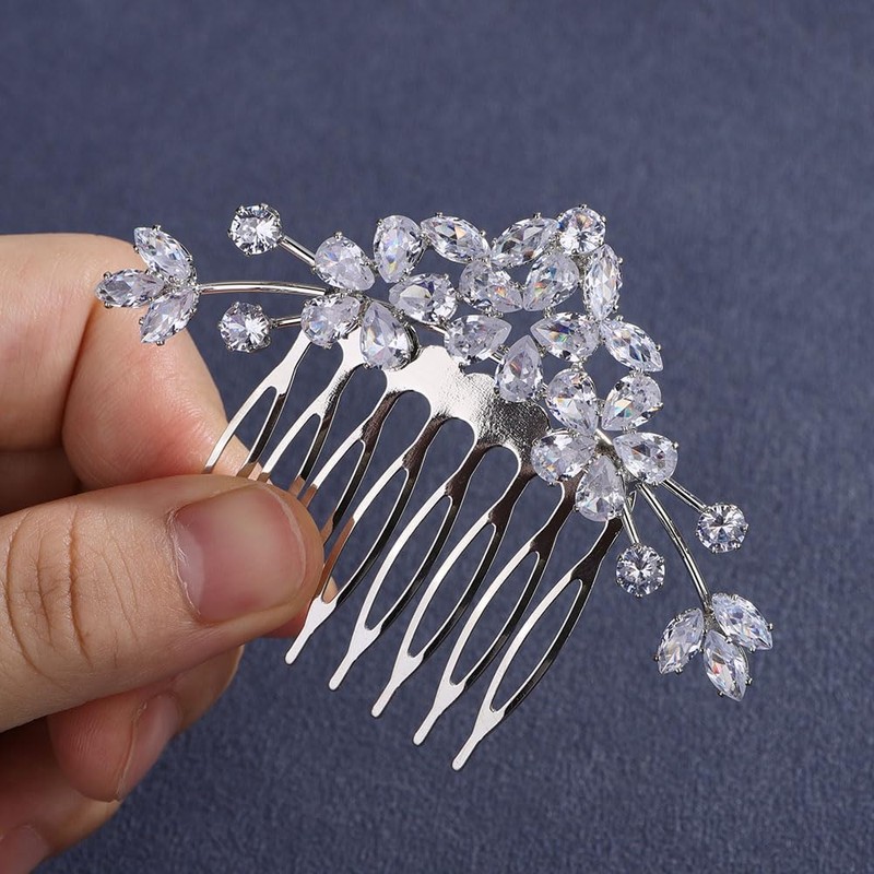 Missgrace Bridal Rhinestones Hair Comb Sparkling Dainty Rhinestones Headpiece for Women Flower Elegant Hair Comb Hair Accessoires for Bride