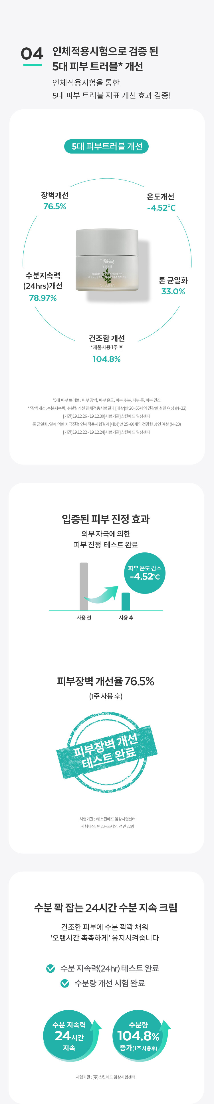 - 효과: 피부진정