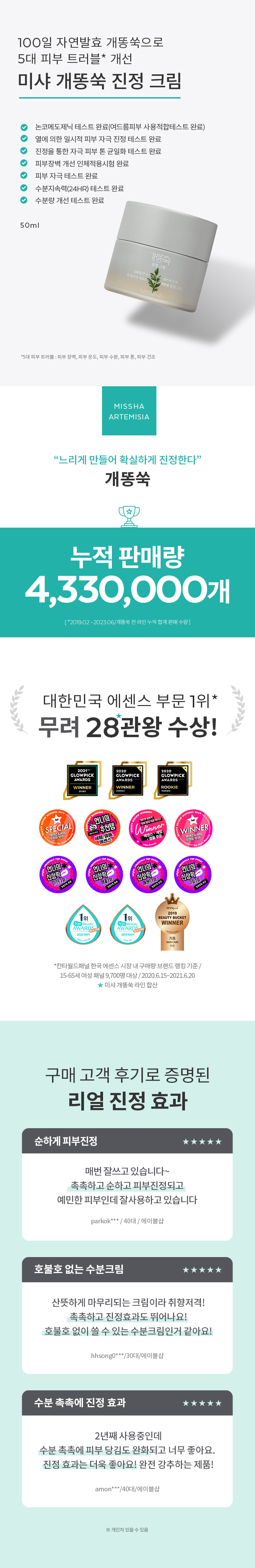 Missha NEW Artemisia Calming Cream 50ml / 미샤 NEW 개똥쑥 진정 크림 50ml
