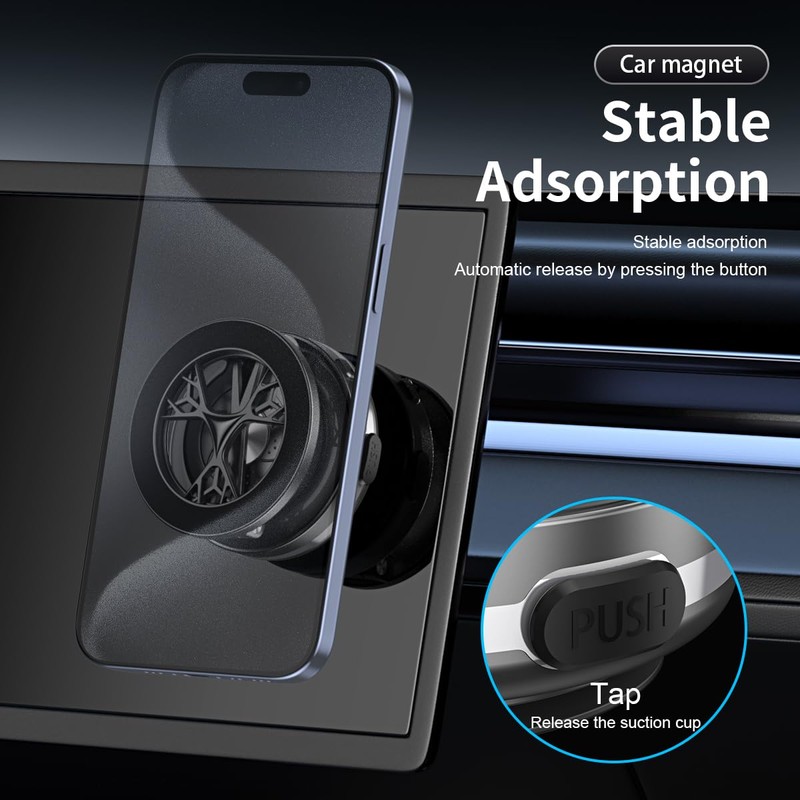 - ADVANCED ELECTRIC MAGNETIC FORCE TECHNOLOGY With the latest electric magnetic technology, this phone holder attaches effortlessly to various surfaces, including car glass, dashboard and desktops. With electric suction capabilities, this versatile holder adapts to multiple scenarios for a seamless experience.
