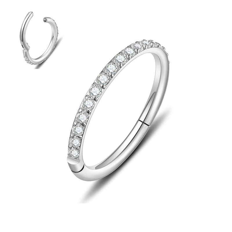 MissNity Hinged Nose Ring Hoop 316L Surgical Steel 18G Clicker Segment Septum Jewelry with Clear Gems. Hypoallergenic, Non-Tarnish Piercing, 18 Gauge, 9mm, Silver