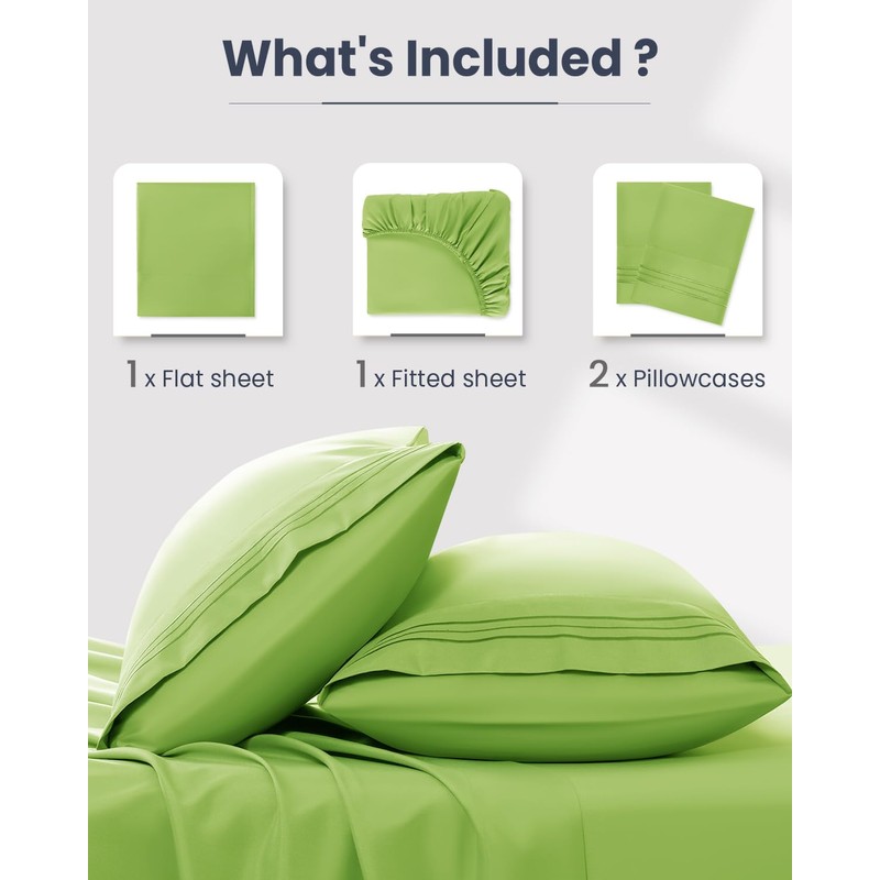 MISSQ California King Size Bed Sheets Set - Cooling, Extra Soft, Wrinkle & Fade Resistant, Hypoallergenic - 4 Piece Hotel Luxury Microfiber Sheets with 16 Inch Deep Pocket, Cal King, Grass Green