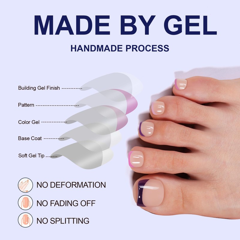 - 【Frosted Matte Texture】The french gel toenail tips uses internal sanding technology to makes the false nail back comes with a coarser matte, making the adhesion between the nail and glue stronger and not easy to fall off.