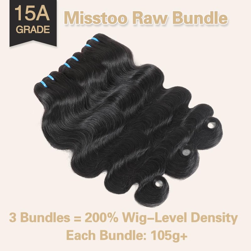 Misstoo 15A Cambodian Body Wave Bundles, 3 Bundles 10 12 12 Inch, Ultra Thin Double Drawn Sew In Weft, Unprocessed Raw Virgin Real Human Hair Extensions, Cuticle Aligned, Triple Lifespan, Reusable