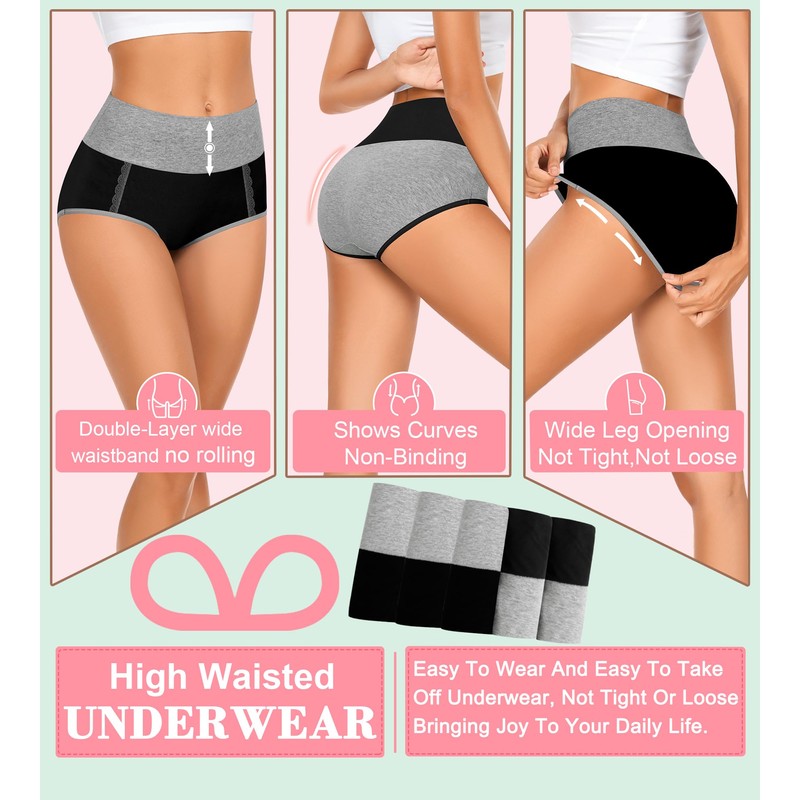 MISSWHO Cotton Soft Ladies Underwear, High Waisted Tummy Control Post Partum Underware Panties Plus Size Briefs C Section 5 Pack XX-Large