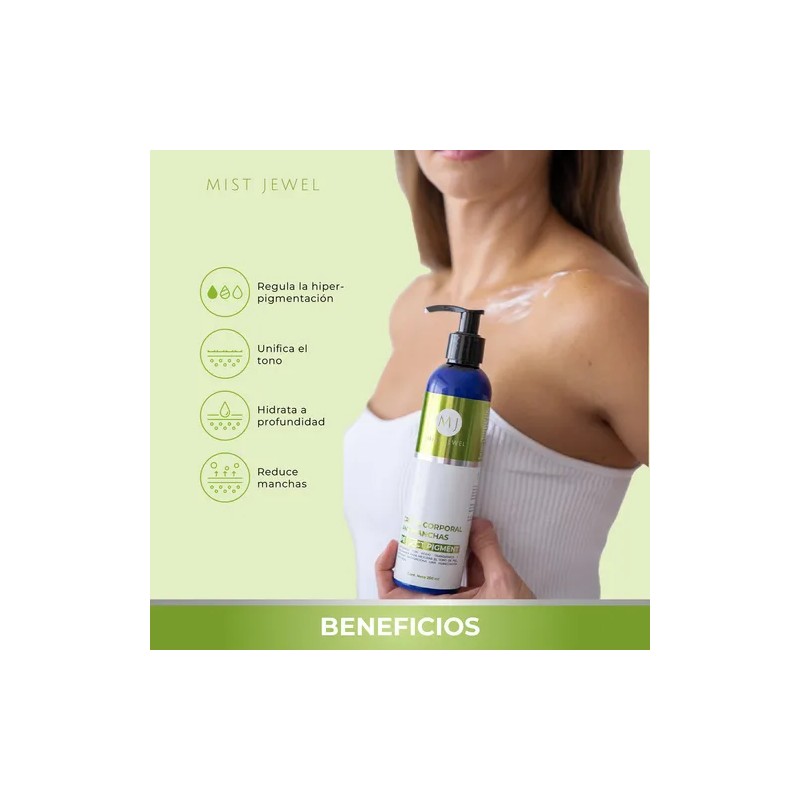 MIST JEWEL Crema Corporal Desmanchante e Hidratante Perfect Pigment con Ácido Tranexámico y Mulberry | Desvanece Manchas, unifica el tono y Aclara la Piel, ideal para zonas intimas, axilas codos 250ml