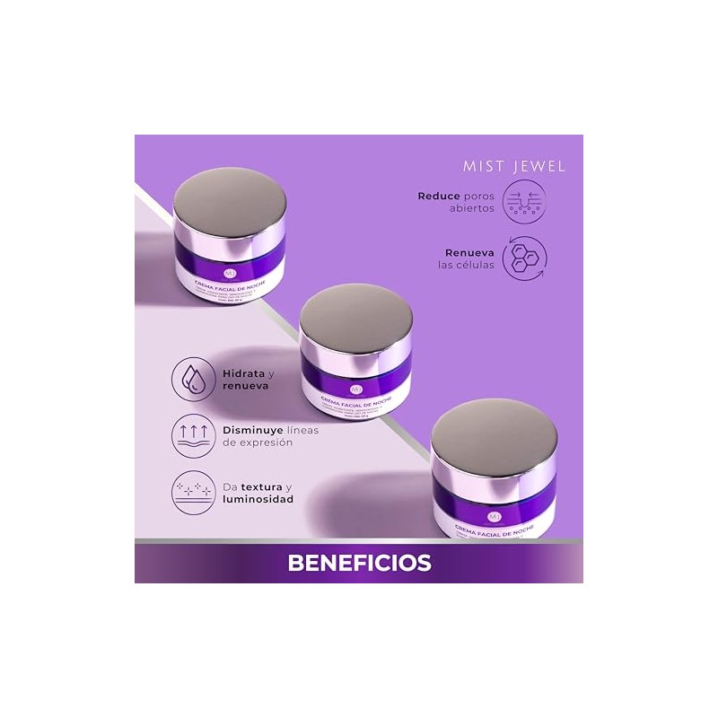 🌟 💄 MIST JEWEL Crema de Noche Facial con Niacinamida, Ácido glicolico, Retinol, Elastina y Colágeno | Crema reparadora e hidratante de cuidado facial para uso nocturno skin care hombre y mujer. Todo tipo de piel 50g 💄 🌟