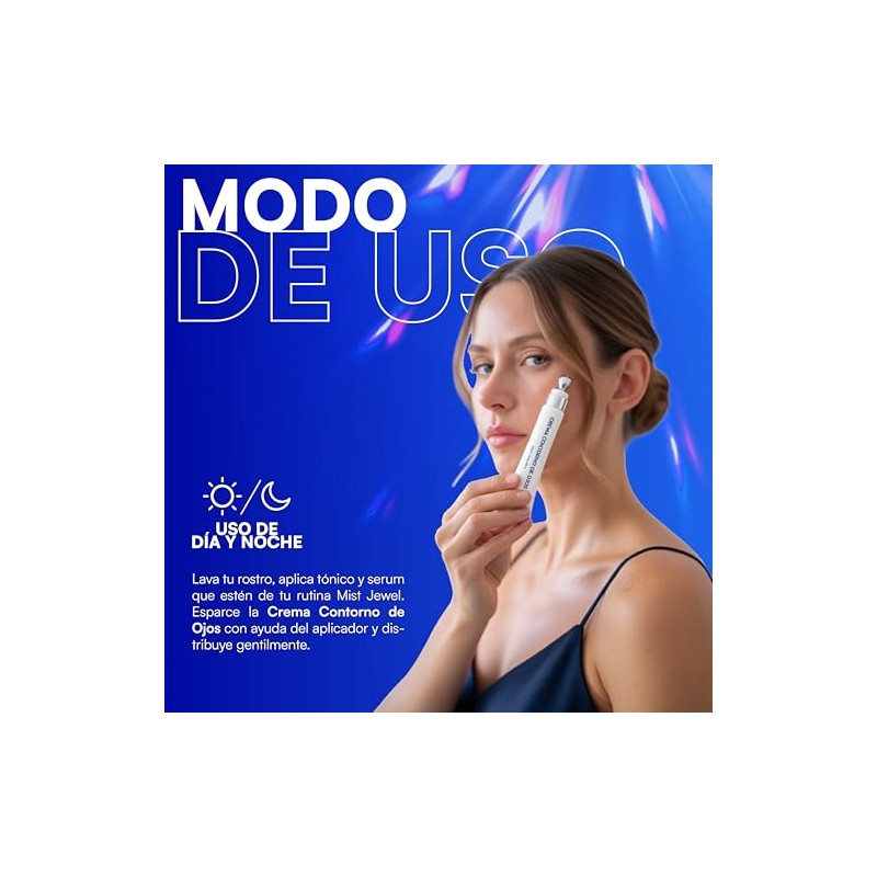 🌟 ⭐ MIST JEWEL | Crema para contorno de ojos, arrugas, bolsas y ojeras obscuras | Con cafeína, Ácido hialurónico y esferas hidratantes 20g ⭐ 🌟