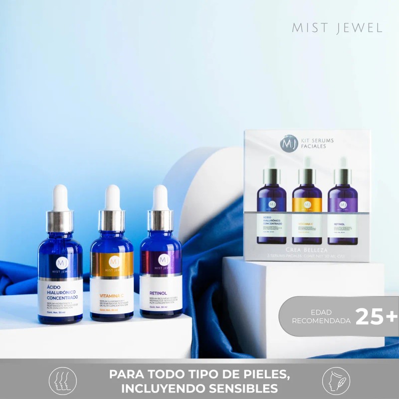 Mist Jewel, Kit Facial Con 3 Sueros Acido Hialurónico, Retinol, Vit C