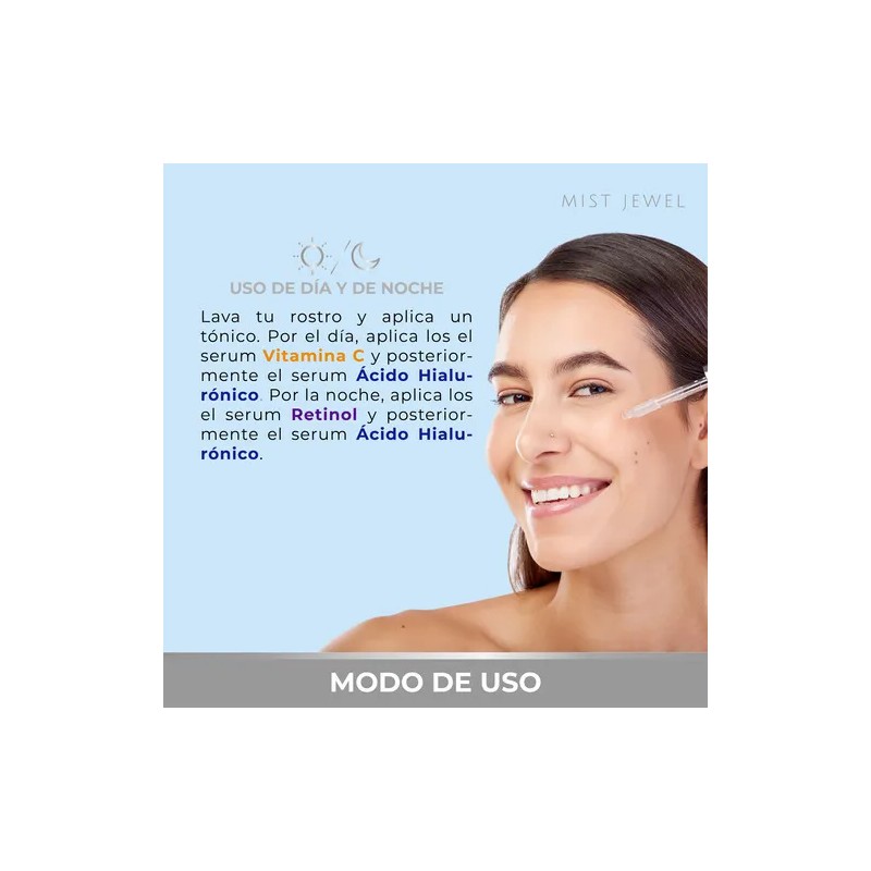 MIST JEWEL Kit sueros faciales Acido Hialurónico, Retinol y Vitamina C + E | Conjunto de serums completo para rejuvenecer, proteger y cuidar el cutis antiedad (KIT facial complete)