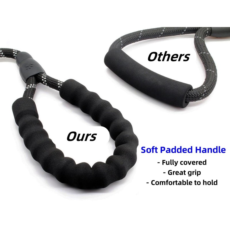 • COMFORT PADDED HANDLES - Dog leash with soft padded handles for amazing comfortable shock grip, just enjoy the feeling walks with your dog and protects your hand from rope burn.