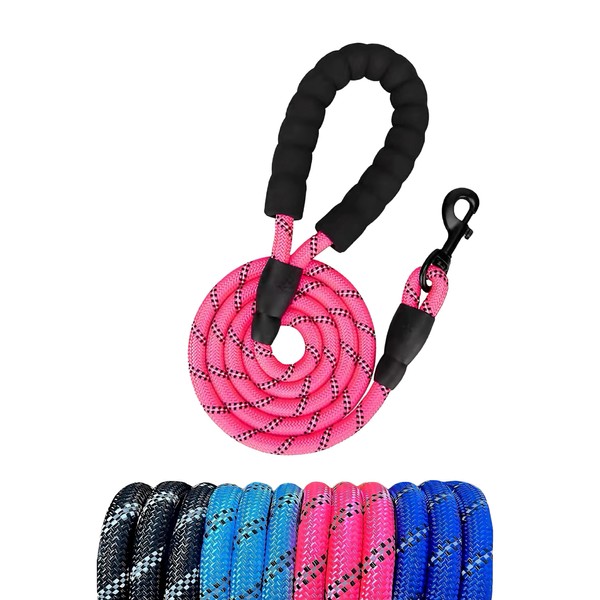 Misthis 5FT Strong Nylon Dog Leash with Comfortable Padded Handle and Highly Reflective Threads for Medium and Large Dogs Pink