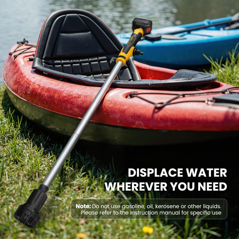 - LIGHTWEIGHT AND PORTABLE DESIGN: The body has a net weight of 2.4 kg, which is light, and the water pipe part is divided into three sections for easy carrying. The water pump is easy to operate. Just a light touch can switch it on and off, ensuring easy use in a variety of applications. It is very suitable for the transfer of water in swimming pools, courtyards, fish tanks, puddles, etc., as well as watering garden courtyards, etc