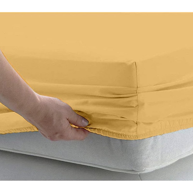 MistyMorning Fitted Sheet, Soft & Premium quality Bedding & Linen, 11''/28cm deep sheet, Egyptian Cotton with 200 Thread Count. (Ochre/Yellow, Super King)