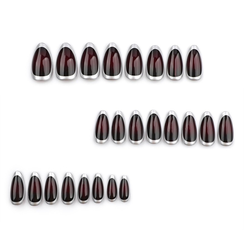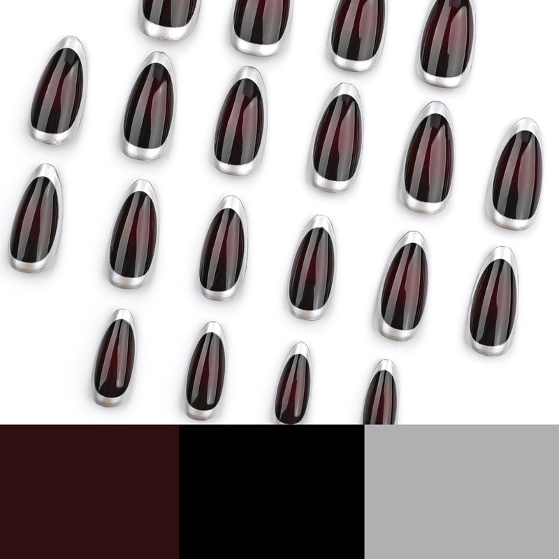 - 【Unique Design】 According to the most popular elements of the moment, these medium almond press on nails are designed with goth red black ombre and silver chrome.