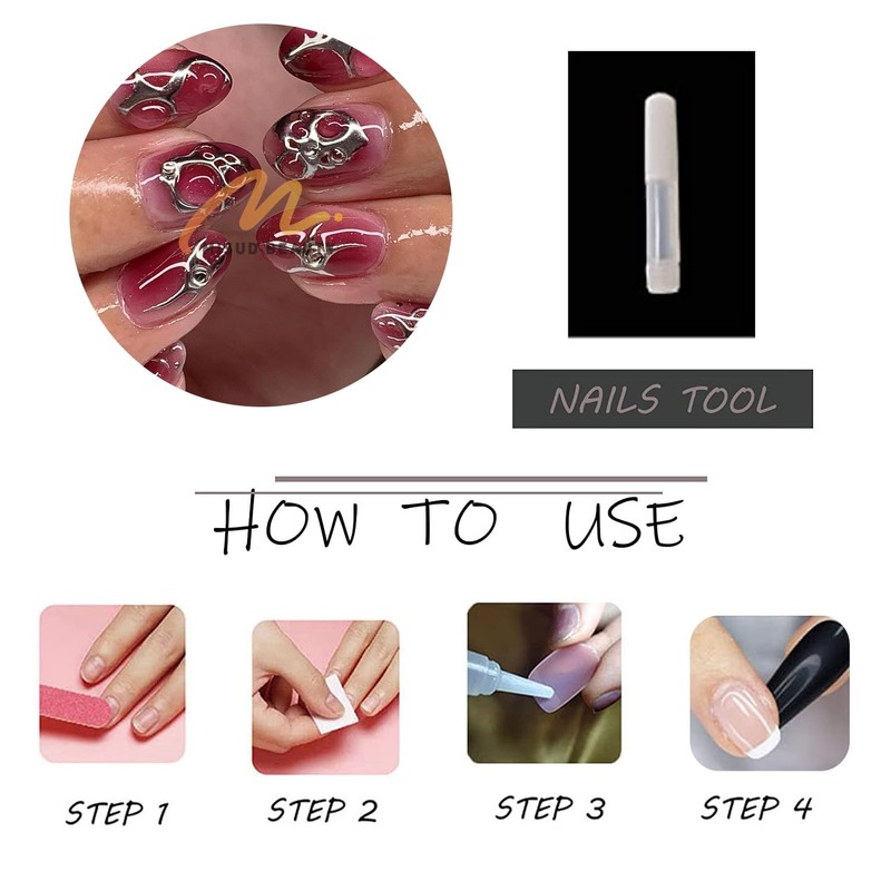 3.Select a right size of the nail, apply the glue to the back of the nail and put it on your fingernails.