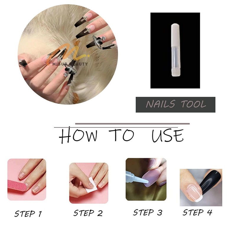 3.Select a right size of the nail, apply the glue to the back of the nail and put it on your fingernails.