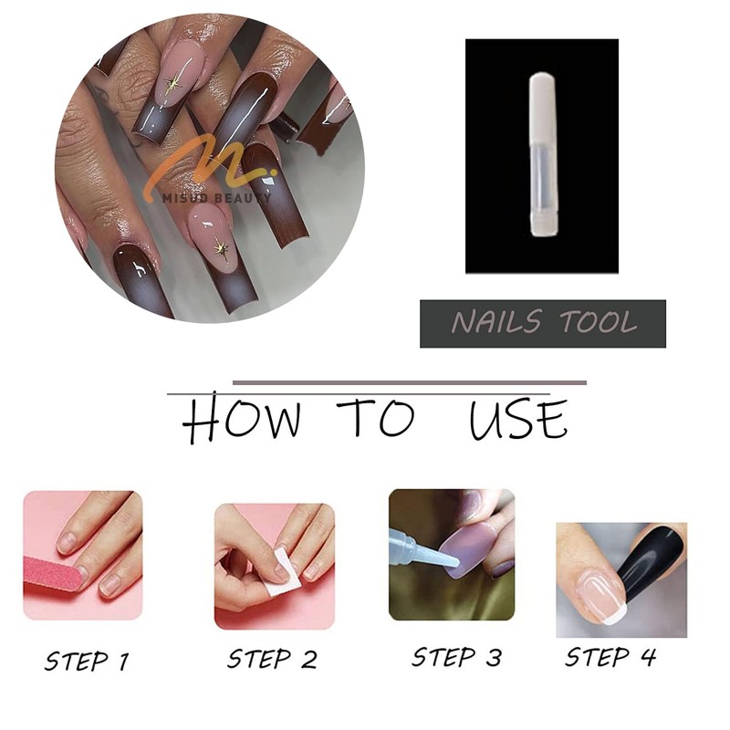 3.Select a right size of the nail, apply the glue to the back of the nail and put it on your fingernails.