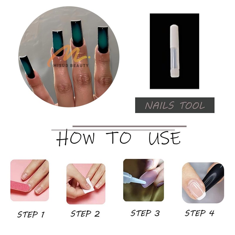 - 【Unique Design】 According to the most popular elements of the moment, these long square press on nails are designed with goth black green ombre.