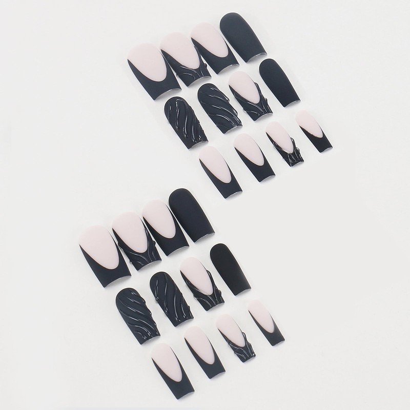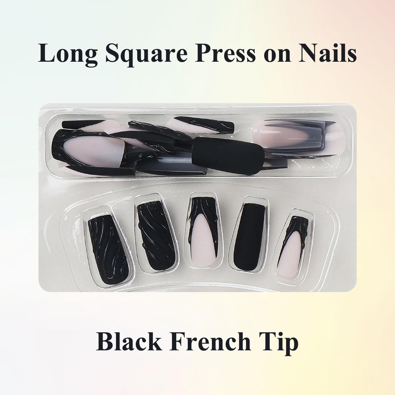 - 【Unique Design】 According to the most popular elements of the moment, these long square press on nails are designed with matte black french tip and handmade 3d water ripple.