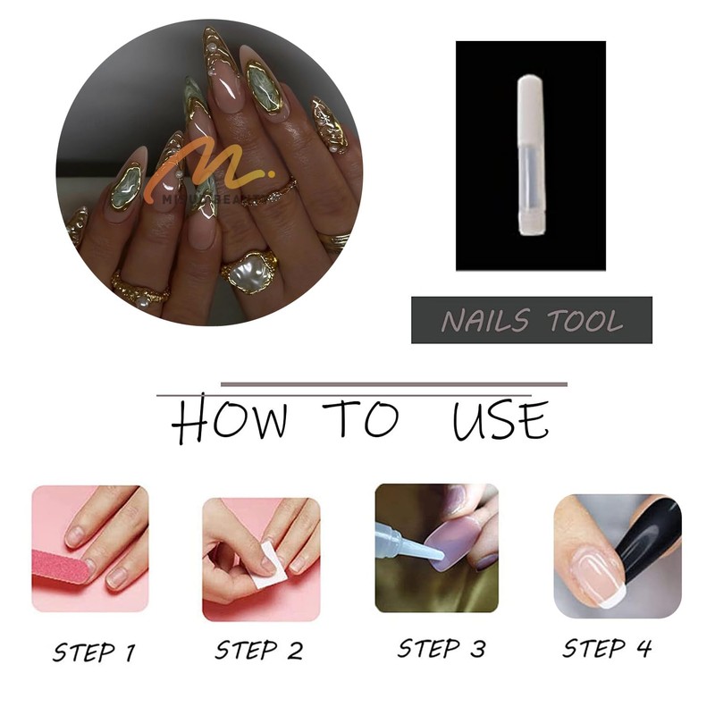 3.Select a right size of the nail, apply the glue to the back of the nail and put it on your fingernails.