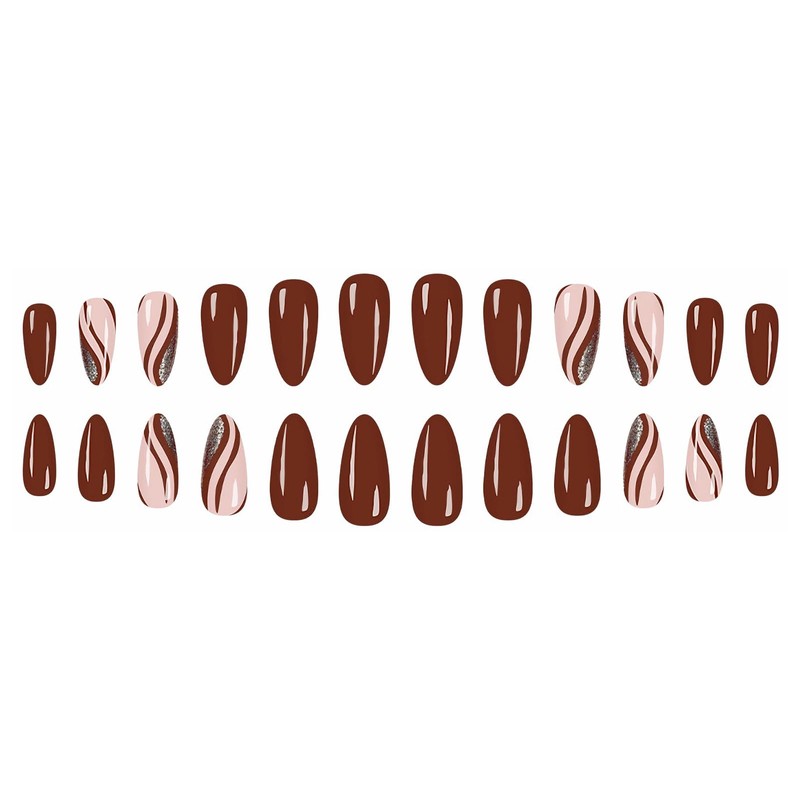 - 【Unique Design】 According to the most popular elements of the fall moment, these medium almond press on nails are designed with brown swirl and bling glitter.