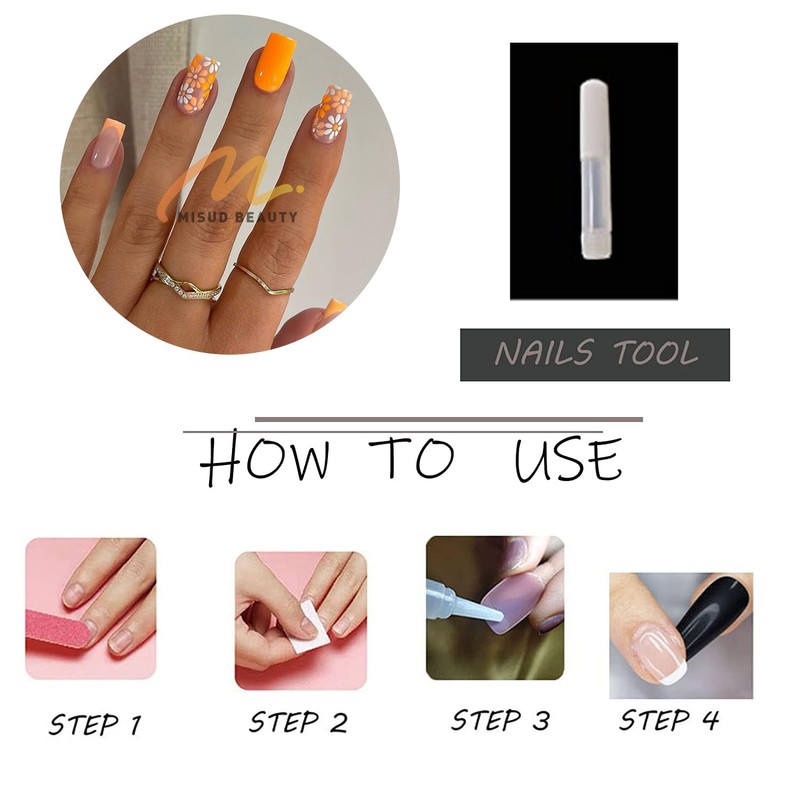 3.Select a right size of the nail, apply the glue to the back of the nail and put it on your fingernails.