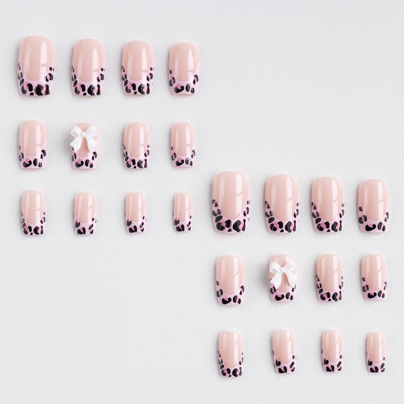 - 【Unique Design】 According to the most popular elements of the moment, these short square press on nails are designed with pink leopard french tip and cute bow.